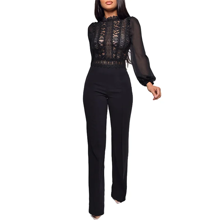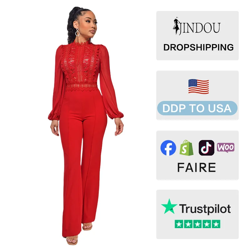 Elegant Floral Lace High Waist Waterproof Breathable Eco-Friendly Ruffle Sleeve Long Sleeve Digital Printing Jumpsuits Women